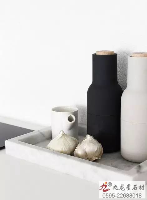 ↑大理石紋的托盤可以有一個(gè)。整齊的擺放上必備調(diào)料瓶,兼具收納功能哦。