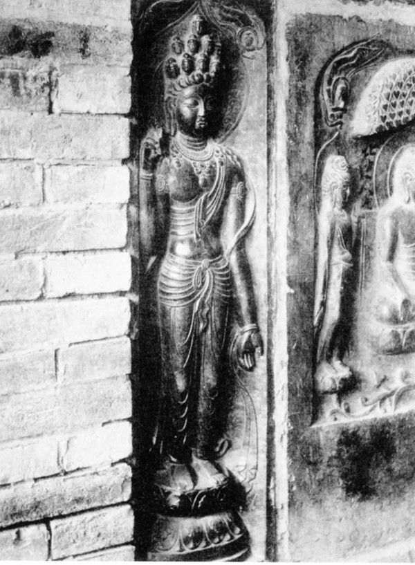 《國華》中的七寶臺唐代雕塑照片,定年703。圖片來源:Stanley K. Abe, “From Stone to Sculpture”, p.12.