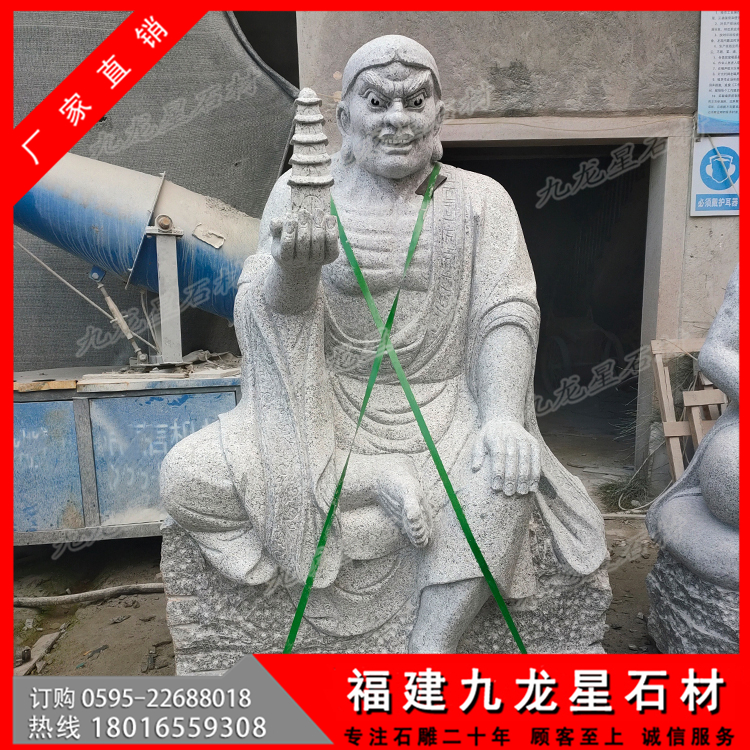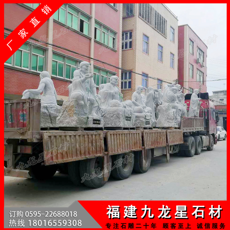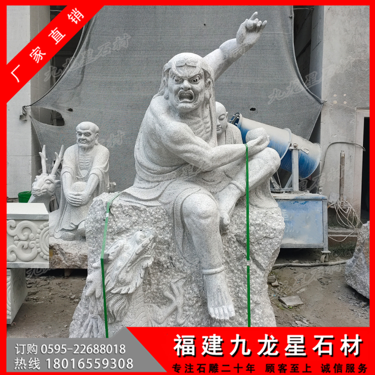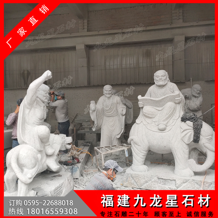 看著每一尊寺院十八羅漢石像,不得不感嘆古人的智慧啊。這些被珍藏的十八羅漢塑像,保存的如此完好,這還是要歸功于,十八羅漢塑像是采用的天然石材手工雕刻而成,純天然的石頭在大自然中被人們開鑿來制作成十八羅漢石像作品,這樣的一整套十八羅漢作品,不僅帶著天地精華,也將人們的智慧和工藝賦予其中,石刻十八羅漢就是最好的安排了吧。古代十八羅漢帶有歷史沉淀的韻味,具有很高的研究價值。而現(xiàn)代十八羅漢雕刻為了能有這樣的一份感情,開始了對石雕18羅漢仿古做舊的技術(shù),也更符合一些古建筑,古剎寺院去擺放仿古代石雕十八羅漢擺件。