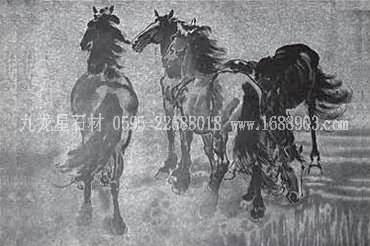 影雕是一種新的石材雕刻工藝。它是將純色石材(通常為黑色),先經(jīng)表面磨光,然后根據(jù)黑白明暗的成像原理,通過尖細(xì)的工具琢出大小、深淺、疏密不同的微點,像早期的黑白照片一樣靠不同的黑百層次來表現(xiàn)圖案。不過隨著工藝技術(shù)的發(fā)展,現(xiàn)在也出現(xiàn)了彩色的影雕了. |