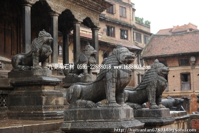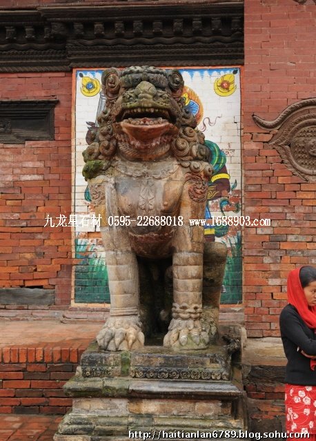 帕特王宮廣場匯集了眾多風格古樸的寺廟和石雕。眾石獅們在各自的崗位上日夜守衛(wèi)著馬拉國王的古代宮廷,黑天神廟,加格納拉揚神廟,帕特國王雕像柱和黃金廟。尤其是廟克里希納廟、也稱黑天神廟,處在王宮廣場的核心位置,供黑天神,建于1667年,由于是王室所建,規(guī)模自然比普通神廟大一些,氣勢上勝一籌。所以從外觀上就可以看到,整個神廟坐落在高臺基之上,主殿的圣所正上方,聳立著一座有21個鎦金塔頂?shù)闹窆S狀塔頂,塔亭的欄桿間,栩栩如生的雕刻著印度古典史詩《摩坷婆羅多》和《羅摩衍那》的圖像、神像和鳥獸。除塔頂外完全用石頭建成,遠遠望去,像是一件精美的石雕工藝品。這是尼泊爾建筑藝術的奇跡,而這樣一座偉大的建筑,竟完全不用圍墻,也沒有手持武器的衛(wèi)兵。那么,誰來護佑她的安全呢?自然是石獅子了。門前一個獅子衛(wèi)隊,那叫一個威武啊,就算是牛鬼蛇神壞人也沒有敢起歹心的。