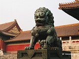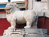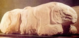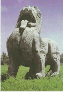 南北朝時期,墓前雕像有所恢復(fù),一般都在墓前設(shè)置一對或多對石獸。這種悖常為“神獸”的想象中動物形象,被成為“麒麟”,有的似獅虎,卻右翼,被稱為“避邪”。這種石雕一般都比較龐大,姿態(tài)宏偉,整體感較強(qiáng),又較為濃厚的漢代遺風(fēng)。現(xiàn)存遺跡多為南北朝時作品,江蘇南京周邊比較多見。其中最為杰出的是江蘇句容石獅村梁南康簡王蕭績墓前的石雕群,造型簡潔,體積感強(qiáng),最能代表當(dāng)時的藝術(shù)風(fēng)格。