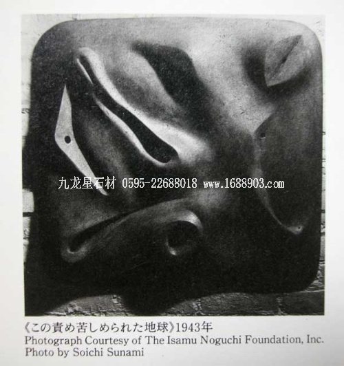 1996年3月我在東京第二次看野口勇雕刻展覽,盡管那時(shí)我已經(jīng)認(rèn)識(shí)到他是一位重要的雕刻家,但是對(duì)野口勇的認(rèn)識(shí)還是相當(dāng)模糊,然而兩個(gè)月之后,在看"野口勇和路易·康(Louis Kahn)"展覽時(shí),一件1943年創(chuàng)作的黑色銅雕"被蹂躪的地球"讓我覺(jué)醒,這件作品讓我生出想去撫摸的感覺(jué),(在這里說(shuō)可能不太文雅,但是我必須誠(chéng)實(shí)地講出來(lái)才有說(shuō)服力,那就是我看美術(shù)館中無(wú)人,就閉著眼睛去“撫摸”這件雕刻,那時(shí)通過(guò)手傳達(dá)給我就象在撫摸戀人身體的感覺(jué))這是野口勇雕刻的官能性對(duì)我的誘惑。野口勇的雕刻從日本和中國(guó)的傳統(tǒng)文化的空間美學(xué)中獲得啟示,同時(shí)還通過(guò)東方書(shū)法和日本陶藝讓我們獲得對(duì)身體的感受。
