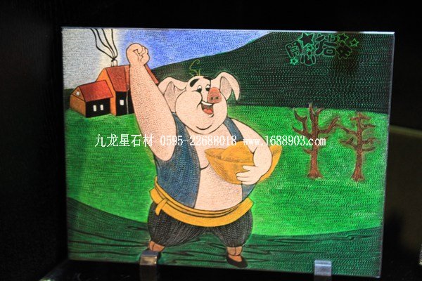 最后重點介紹的是手雕的石板像,石板面的顏色是黑色的,上面的圖案全由雕刻的深淺不同表現(xiàn)出來: