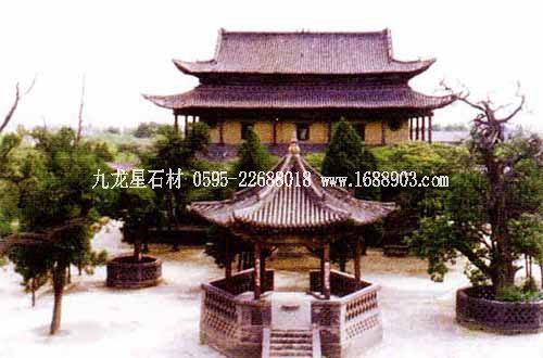 孔廟位于山東省曲阜市南門內(nèi),是歷代祭祀孔子的廟宇,建筑規(guī)模宏大,雄偉壯麗。其平面呈長方形,總面積327.5畝,南北長1120米。整個(gè)孔廟的建筑群以中軸線貫穿,左右對(duì)稱,布局嚴(yán)謹(jǐn),共有九進(jìn)院落。全廟共有五殿、一祠、一閣、一壇、兩堂、十七碑亭、五十三門坊,共計(jì)有殿廡四百六十六間??讖R內(nèi)最為著名的建筑有:欞星門、二門、奎文閣、杏壇、大成殿、寢殿、圣跡堂、詩禮堂等。杏壇,傳為孔子講學(xué)處,壇旁一株古檜,稱“先師手植檜”;大成殿為孔廟的主殿,殿內(nèi)正中奉祀孔子塑像,兩旁為4配和12哲的塑像;東西廡殿原供孔子弟子及儒家歷代先賢;故宅井后的“魯壁”為秦始皇焚書坑儒時(shí),孔子第九代孫孔鮒收藏《尚書》、《禮記》、《論語》、《孝經(jīng)》等書的夾墻。孔廟與孔府、孔林并稱“三孔”,是中國現(xiàn)存最大的四大古建筑群之一。