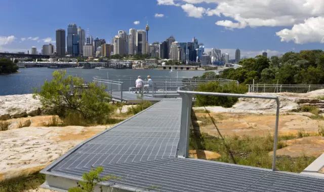 場地作為油庫使用長達(dá)60多年,已經(jīng)不可避免地受到污染.BP公司的這塊場地一度容納了辦公區(qū)和31座儲(chǔ)油罐,巨大的弧形混凝土墻用以防止原油泄露污染海港。新的設(shè)計(jì)保留了場地的工業(yè)遺跡和海港特征,表現(xiàn)為連續(xù)的開放空間和大片的濕地,壯觀的觀景平臺懸踞在高高的半圓形砂巖懸切面上,這里曾經(jīng)矗立著巨大的儲(chǔ)油罐?;炷梁徒饘匐A梯將各個(gè)空間連接起來,方便游人欣賞岸邊的親水性野生生態(tài)系統(tǒng)。