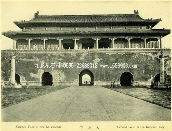 大清門,民國改為中華門,是真正的“國門”,位于天安門正南,50年代擴(kuò)建天安門廣場時(shí)拆除。照片上是大清門的內(nèi)側(cè),自天安門廣場拍攝。