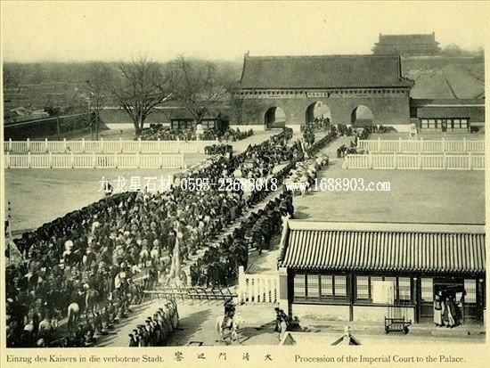 大清門迎鑾,應(yīng)該是1901年慈禧、光緒自西安回鑾時(shí)進(jìn)大清門時(shí)的情景,遠(yuǎn)處是天安門。
