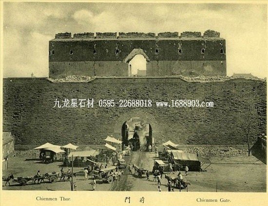 正陽門,俗稱前門,是明清兩朝北京內(nèi)城的正南門。1900年,城樓和箭樓為八國聯(lián)軍所毀。1903年和1906年分別重建。照片上是重建前的前門。