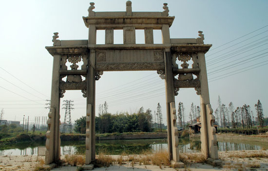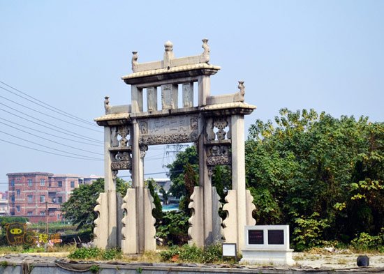 牌坊高7米,長11.94米,以花崗石雕鑿構(gòu)筑,石雕有蹲伏獅子及鳥類花木圖案,四柱三間樓式牌坊,正面上刻:“恩榮”二字,下方是“良二千石”四字,右側(cè)刻“兩廣軍務(wù)巡撫廣東地方口口口右都御史兵部右侍郎殷正”,左側(cè)刻“萬歷二年甲戊科進(jìn)士朱壤”牌坊背面刻“賜進(jìn)士第中憲大夫,四川夔州府知府前福建延平府南平縣知縣,江西樵州府臨川縣知縣,南京戶部主事,戶部員外郎,欽差督理浙江北新關(guān)稅務(wù),戶部郎中,贈(zèng)兵部左侍郎崇杞府縣鄉(xiāng)賢朱壤”。