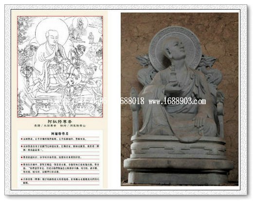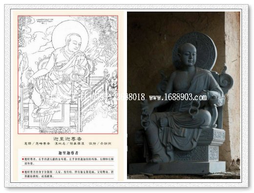 這些由兩米多高整塊青石雕刻的十八尊羅漢單人像,是尊貴的嘎瑪仁波切依據(jù)德格印經(jīng)院的木刻稿本,請福建世代為宮廷雕刻的匠師雕刻的。為此嘎瑪仁波切曾數(shù)十次親自到福建的工場,指導(dǎo)匠師們依據(jù)藏地的風(fēng)格來雕刻,慢慢調(diào)教工匠的習(xí)慣和造型的漢藏差異。欣賞的這些已完成,與漢地羅漢風(fēng)格迥異的羅漢像,你會發(fā)現(xiàn)與漢地羅漢相比,藏地的羅漢形象沒有被金剛化。因為羅漢都是長老級別的,年歲最大,資歷最老的和尚,才被尊為羅漢。這些羅漢形象更寂靜調(diào)柔。內(nèi)在的修為,在頭部五官神態(tài)精妙地刻劃中,濃濃淡淡隨著光影空氣的顫動,立體地顯露出來?;?qū)幧癯良?或幽思默然,或目視遠方,或瞇眼看著你,神態(tài)內(nèi)斂,表情微妙。眉眼、嘴角的線條中蘊含著慈悲、包容、澹然的氣息,仿佛有生命一樣令人感動。一尊一尊,或國王、或菩薩、或英雄、或盤腿的坐姿,以各種手勢,或持物端坐于法座上,這些細節(jié)完全與漢地風(fēng)格不同。十八尊藏式羅漢的雕刻技藝和藝術(shù)表現(xiàn)力,完全可以說是現(xiàn)今中國石雕羅漢像的最高成就,絕無僅有。