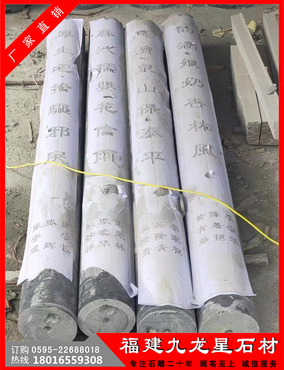 人類沒有任何一種重要的思想不被建筑藝術(shù)寫在石頭上。當(dāng)我們想起過去的偉大發(fā)明時(shí),我們有一種習(xí)慣,就是應(yīng)用看得見,有紀(jì)念性的建筑作為每個(gè)文明獨(dú)特的象征。福建泉州市九龍星石材有限公司成立于2009年3月份成立,坐落于著名的“中國石雕之都”福建省惠安縣,是一家集研究創(chuàng)作、生產(chǎn)加工、安裝、銷售于一體的石材石雕專業(yè)生產(chǎn)型企業(yè)廠家。本公司秉承品質(zhì)第一,工藝第一,服務(wù)第一的經(jīng)營理念,雕刻的產(chǎn)品能更好的呈現(xiàn)在你眼前。誠信是我們一直以來的目標(biāo),我們一直把誠信放在第一! 本公司提供簡單的石雕柱子批發(fā),歡迎來電。