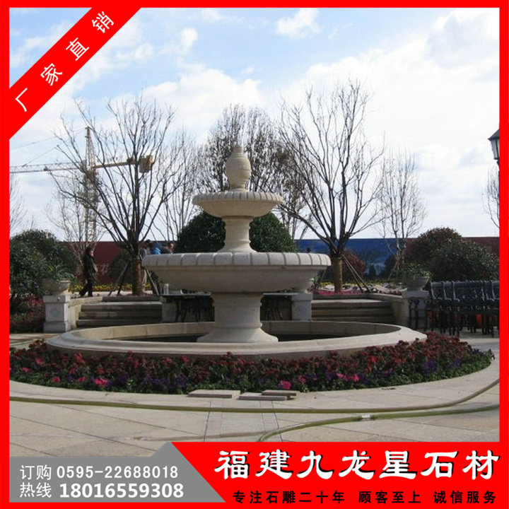 石雕水缽可分為:噴泉水缽、流水水缽。噴泉水缽在設(shè)計(jì)結(jié)構(gòu)原理上要比流水水缽復(fù)雜的多。石材雕刻噴泉設(shè)計(jì),它的巧妙之處就是將靜水變?yōu)閯?dòng)水,使水也有了靈魂,噴泉噴頭是完成噴泉藝術(shù)造型的主要工作部件,它的作用是把一定壓力的水,經(jīng)過造型的噴頭,形成絢麗的水花,噴射在水面的上空。各種不同的噴頭組合配置,更能創(chuàng)造出千姿百態(tài)的水景景觀,令人興奮,激動(dòng),產(chǎn)生奇妙的藝術(shù)效果。噴泉噴頭的種類有很多,按照結(jié)構(gòu)形式不同,可分為直射、旋轉(zhuǎn)、水膜、吸力、霧化等多種類型;按照所噴水流的花形可分為蒲公英、喇叭花、牽牛花、蘑菇、冰塔、開屏以及噴霧噴頭等多種類型。石雕噴泉水缽是水缽中比較復(fù)雜的一種石雕水缽,在水缽的中心位置安裝一個(gè)噴頭,一般是在比較突出的地方,這樣水流才可以上去,噴頭所噴出來的水一般和朝向天空,水流就能飛散開來;或者做一圈的噴頭斜上天空,出現(xiàn)的水流會(huì)成半圓弧的拋物線形態(tài)。噴泉的力度不能太大,如果太大會(huì)造成水灑到其他地方,從而導(dǎo)致地面上濕滑,容易出現(xiàn)意外,而這兩種方式都是非常普遍的,也是石雕水缽較為常見的噴泉方式。