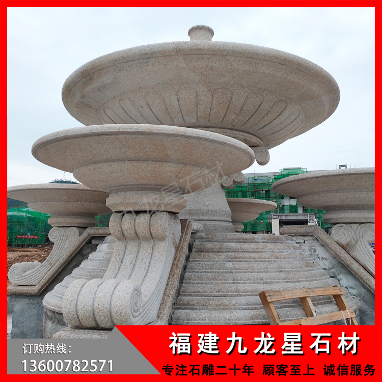 黃銹石石雕噴泉水缽景觀雕塑——浙江金華中交集團(tuán)