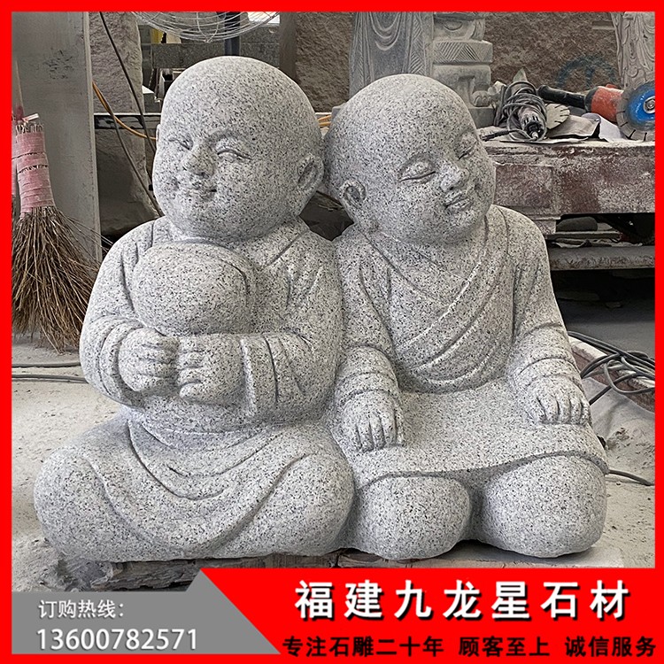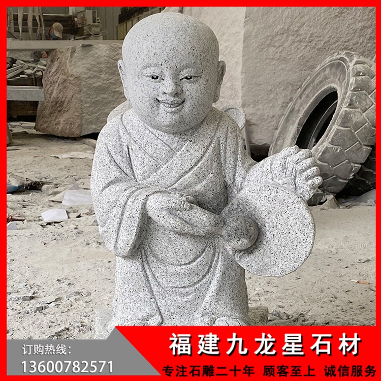 石雕中有一類特別的佛像作品,就是石雕佛像小沙彌,石雕小沙彌實際上是佛像的一種補充,是佛教中佛法的未來力量和未來希望,最初的石雕佛像小沙彌實是以釋迦摩尼和彌勒佛小時候的造型為原形的一種體現(xiàn)方式,人們把他們小時候修行的狀態(tài)和形態(tài),動作都記錄下來,然后以石雕的方式表現(xiàn)出來,這一類特別的作品就是石雕小沙彌的前身了。