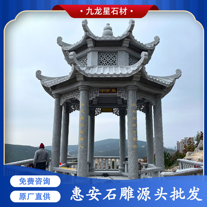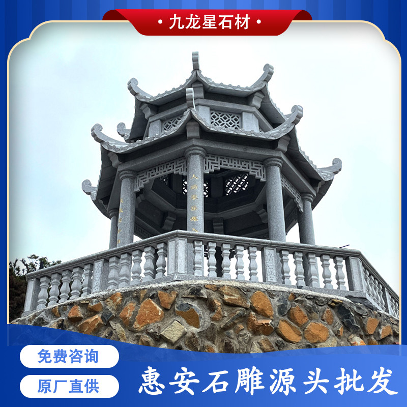 石雕涼亭的作用不僅可以作為休息點(diǎn)、休息區(qū),其實(shí)也是景點(diǎn)或者山間的一個(gè)標(biāo)志性建筑,美觀又不容易損壞,抗壓性強(qiáng)。今天主要帶給大家的是我們近期的案例——雙層惠安灰八角涼亭。
