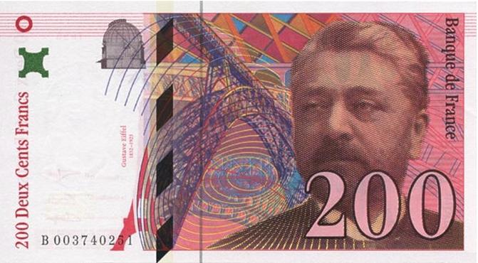 埃菲爾以其著名的巴黎鐵塔享譽(yù)世界,他是杰出的建筑師和工程師,曾在1800年代晚期和1900年代早期設(shè)計(jì)過諸多橋梁和建筑。他的肖像于1996-2002年間出現(xiàn)在200法郎紙幣上。