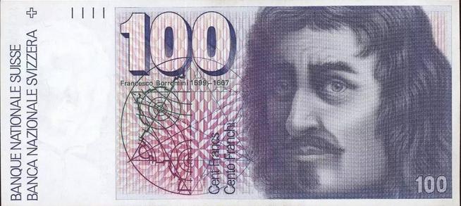 與貝爾尼尼匹敵,博羅米尼為羅馬設(shè)計(jì)了一些最引人注目的教堂,包括四噴泉圣卡羅教堂( San Carlo alle Quattro Fontane )和圣依華堂(Sant'Ivo alla Sapienza)。他的肖像于1976-2000年間出現(xiàn)在瑞士100法郎紙幣上,此間存在一些爭議,因?yàn)樗墓枢l(xiāng)提契諾,如今已屬于瑞士,但在博羅米尼生前是意大利國土的一部分。