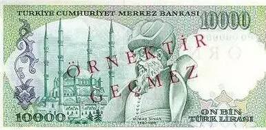 希南是16世紀(jì)奧斯曼帝國蘇丹蘇萊曼大帝塞利姆二世、穆拉德三世統(tǒng)治時(shí)期的總建筑師,曾設(shè)計(jì)了土耳其諸多著名的清真寺和浴場。希南的肖像出現(xiàn)在土耳其10,000里拉紙幣的背面,于1982-1995年間流通。
