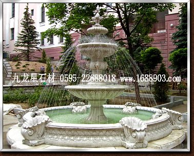 別墅大理石水琺高約約2.2,三層缽盤(pán)結(jié)構(gòu)。羅馬式浮雕紋理。輔6只石雕噴水蝸牛為點(diǎn)綴。