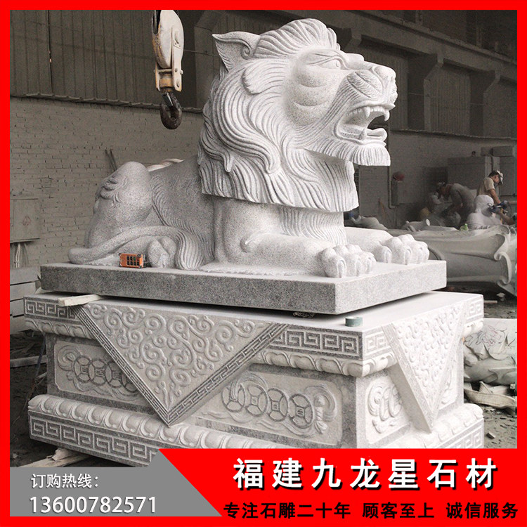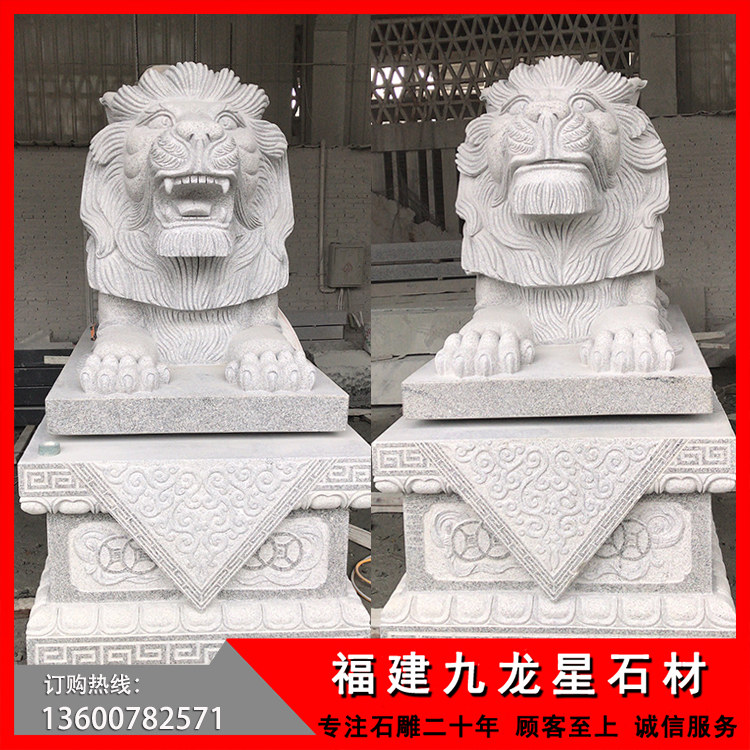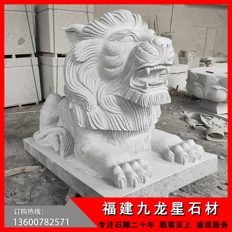 銀行門口石獅子雕塑 花崗巖港幣獅子——廣東惠州